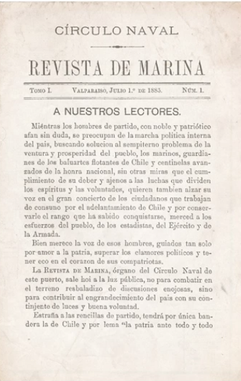 REVISTA DE MARINA es una publicación bimestral, fundada el 1º de julio de 1885. Su misión es reflejar las inquietudes profesionales del personal de la Armada de Chile, en servicio activo y en retiro o de cualquier persona que desee contribuir, a través de este medio, para divulgar y discutir los asuntos relacionados con el pensamiento naval y marítimo, tanto en Chile como en el extranjero y proveer un registro del acontecer naval y marítimo.